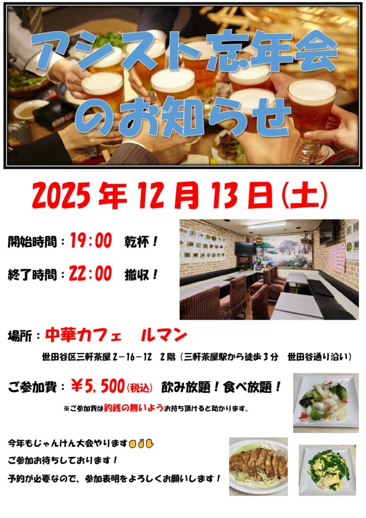 ※忘年会は予約が必要なので、参加表明をお待ちしております!
