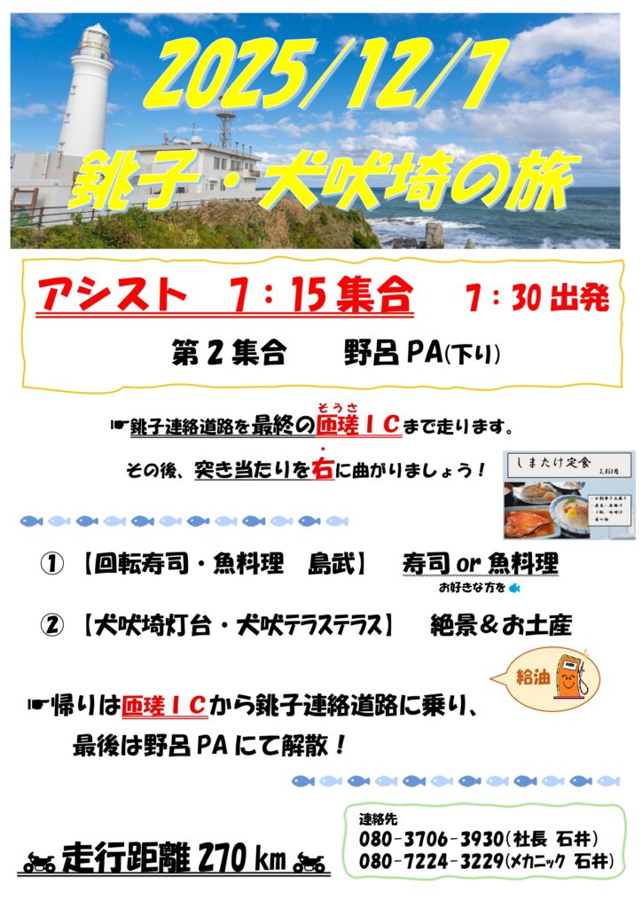 202512銚子・犬吠埼の旅 ツーリング&忘年会のお知らせ